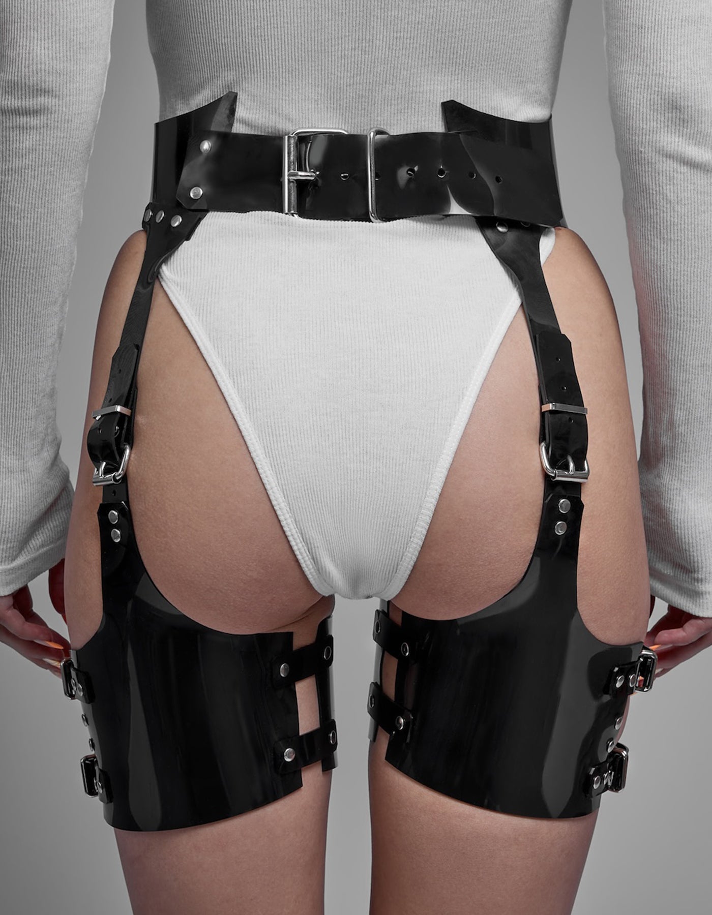 ∞ fastening at the back with adjustable buckles